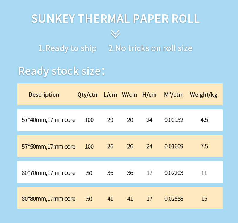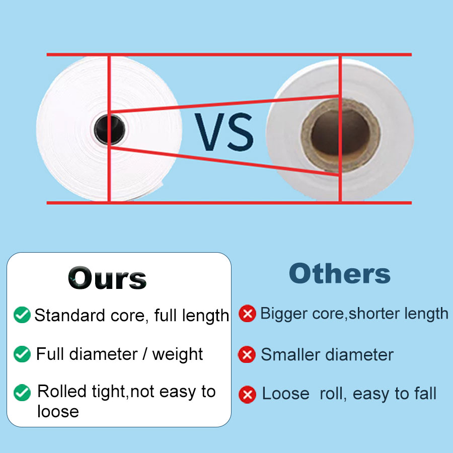 | Paper Roll Size 1 | Width: 57mm * Diameter (30-50mm) |