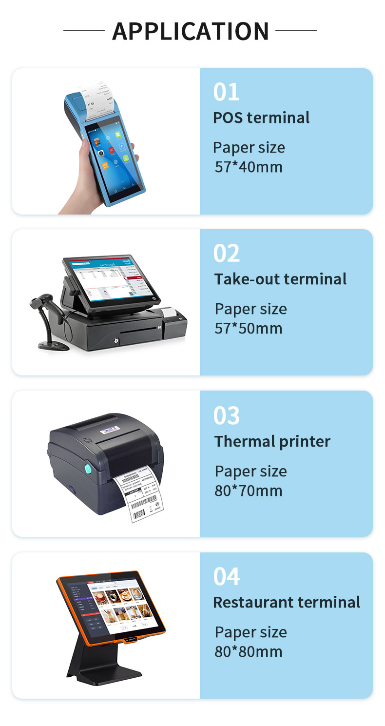 | Keyword | 80*80mm 80*70mm 57*50mm 57*40mm Cash Register Paper, Thermal Paper, ATM POS Printer Paper, Casher Paper, Receipt Paper |